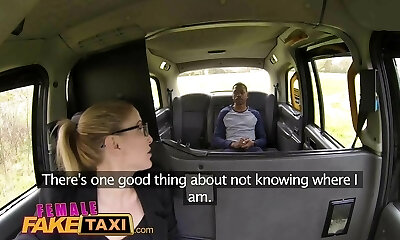 Female Fake Taxi Back seat busty blowage for lucky stud