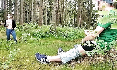Dickflash in the woods, a stranger sucks a schlong and has sperm on her tits