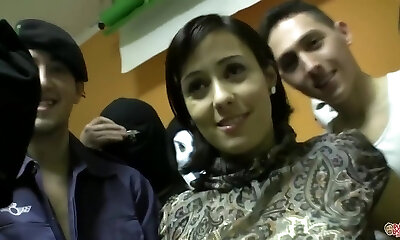 Construction site PUBLIC gang-fuck with a young pretty girl