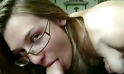 Amateur With Glasses and Nice Knockers Sucks Dick