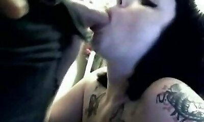 Busty goth dame with huge backside gives her boyfriend a deep blowjob