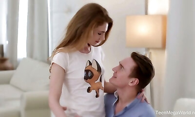 Amateur innate teen with small tits is ready to kiss her stud before fucking