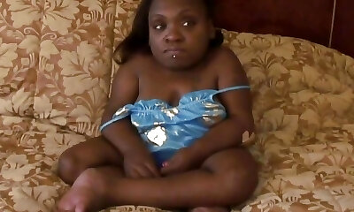 Dark-hued Midget with Big Tits and Nipples Gives Super Hot Blowjobs