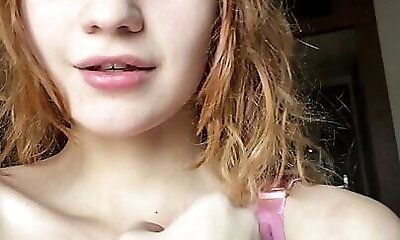 19 year older busty webcam girl with innocent face caresses her big natural ti