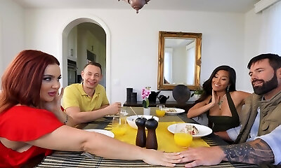 Blonde sexy Candice Dare and torrid pale gal swap their swinger partners