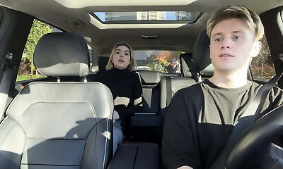 超级可爱的娃娃显示她的baps后吸入一个韦纳在一辆面包车