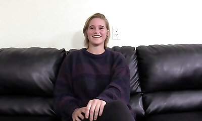 zierlicher und prächtiger unerfahrener teenager-honig nackt auf der couch