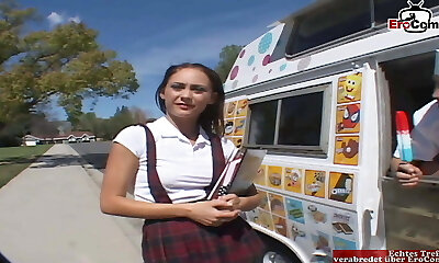 dunkelhaarige kleine college-mädchen teenager mit kleinen titten hat lkw-anschluss