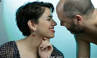 heiße brünette springt auf den riesigen schwanz ihres liebhabers