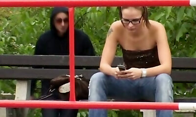 mein versauter hommie zupft kleidung von tschechischen nymphen auf der straße