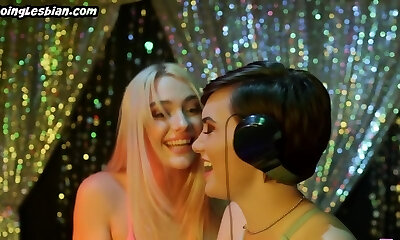 lesbischer nuttiger dj verführt nymphomanin 19-jährigen deich in position 69