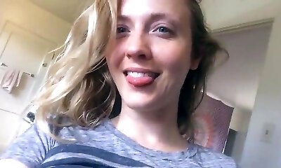 die ash-blonde stunner mit gepiercten brustwarzen bietet einen bj zu ihrem mitbewohner, bevor sie fuck-fest