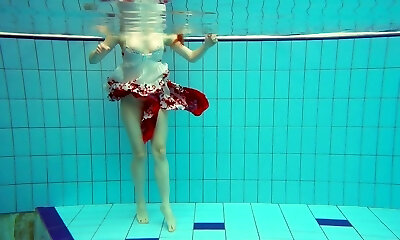 crimson haired russische mädchen zeigt unterwasser-striptease