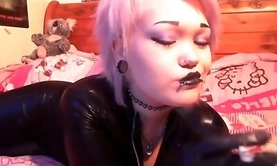 la déesse de l'emo à la gorge profonde après avoir mis un crayon à lèvres en ébène et a fait tomber mon foutre