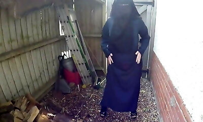 putain de niqab! fette moslemnutte strippt im hinterhof!