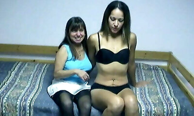 Nerdy petite cougar and her lesbian friend toy their cunts to ejaculation