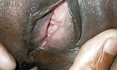 Ebony doll with puffy hard nipples spreads her hole and flashes pink toy