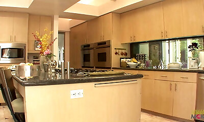 Young big-boobed angel preps her tight cunt for horny mature's strapon