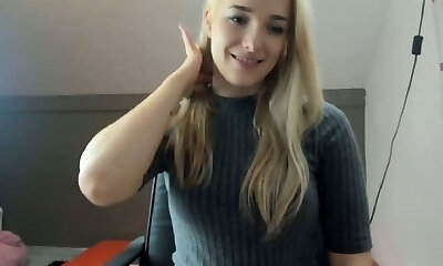 18 year old ash-blonde Kitty showcases her big pink boobs in cam